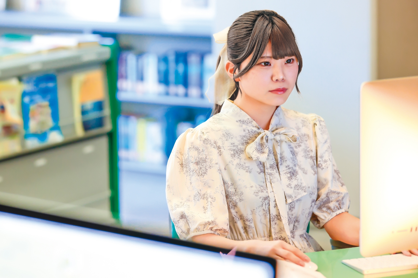 2年という限られた時間でビジネスマナーやスキルを身につけ、多様な資格を目指せるのがこのコースの魅力です。資格とリンクしている授業が多く、私も秘書実務士や簿記、ワープロ検定などを取得。窓口係としてお客様と接するたびに、学びや経験のすべてが活きていると実感します。