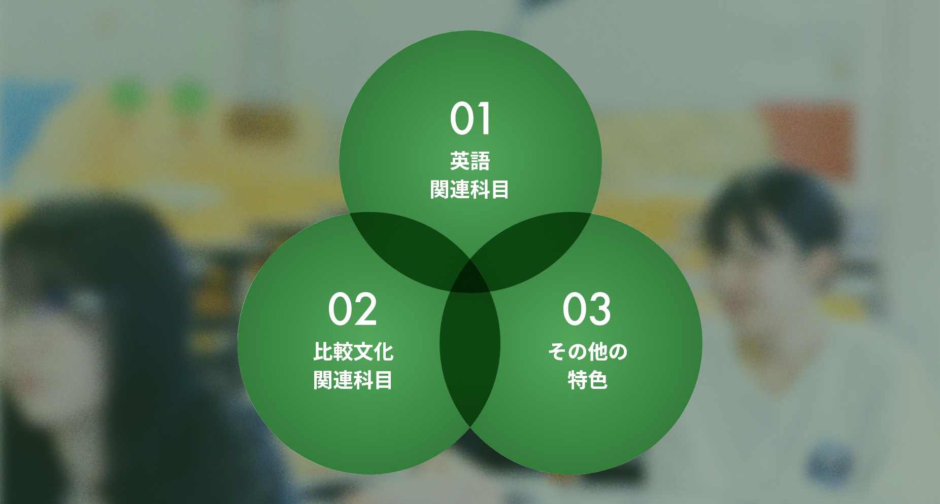関連科目春学期は、外国人講師による英語(Reading, Speaking, Writing)を、毎日2コマ履修します。秋学期は、多数の選択肢から「何を学ぶか」「どこで学ぶか」を選択し、海外または国内で研修を行います。